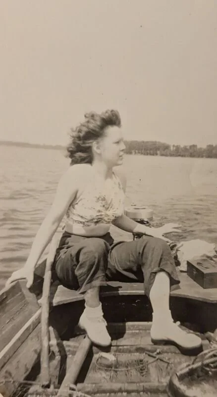 Now, you must understand that my Grandmother was one of my favorite people in the world, and I didn’t get to spend enough time with her because we lived almost 2 hours apart. She was a force to be reckoned with. This photo is her, in 1944. A rebel, if you ask me. Look at her! Bikini top, rolled up jeans and tennis shoes, while driving a boat. So much sass in this photo. I am sure she had been out fishing (because she loved fishing) but the thing about this photo that really gets to me is the big stick next to her. Guess who else carries sticks around?